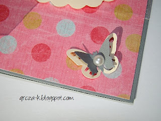 Jakiś czas temu zapragnęłam mieć piękny mini zeszycik żeby móc zapisywać w nim moje pomysły na mapki kartkowe. Pomysł na jego wykonanie znalazłam u Kristiny - ja częściej jej tutoriale oglądam na youtubie. Wszystko już było przygotowane, ale nie wiedziałam jak połączyć jego kartki tak żebym miała łatwy dostęp. Teraz się udało. Jestem bardzo zadowolona, mam wreszcie swój "magiczny" notesik.